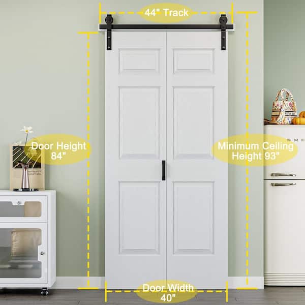 40 in. x 84 in. Paneled 6-Lite White Primed MDF Composite Bi-Fold Sliding Barn Door with Hardware Kit and Handle