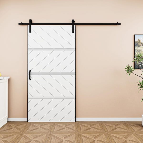 42 in. x 84 in. Paneled 4-Segments Wave Design White MDF Prefinished Barn Door Slab with Installation Hardware Kit