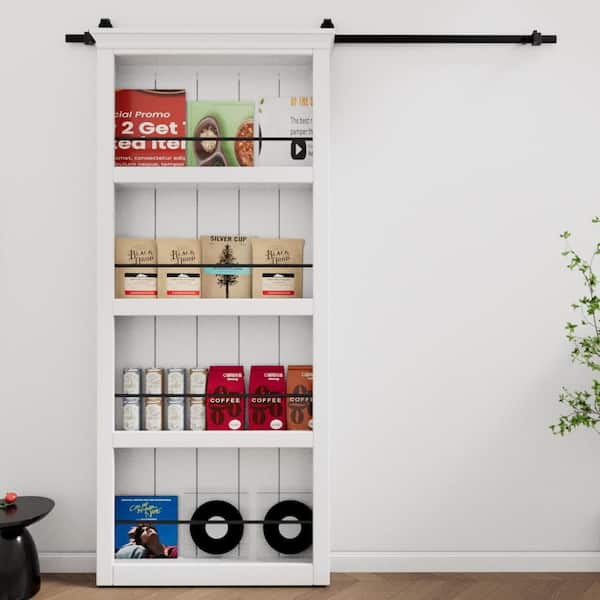 42 in. x 84 in. White Primed Composite MDF Shelves Sliding Barn Door with Hardware Kit and Soft Close