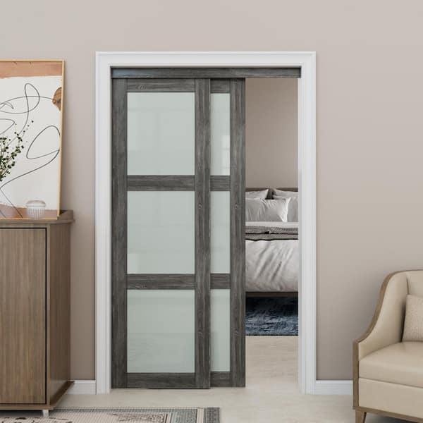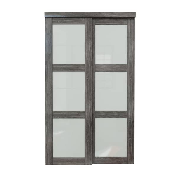 48 in. x 80 in. 3 Lites Frosted Glass MDF Closet Sliding Door with Hardware Kit