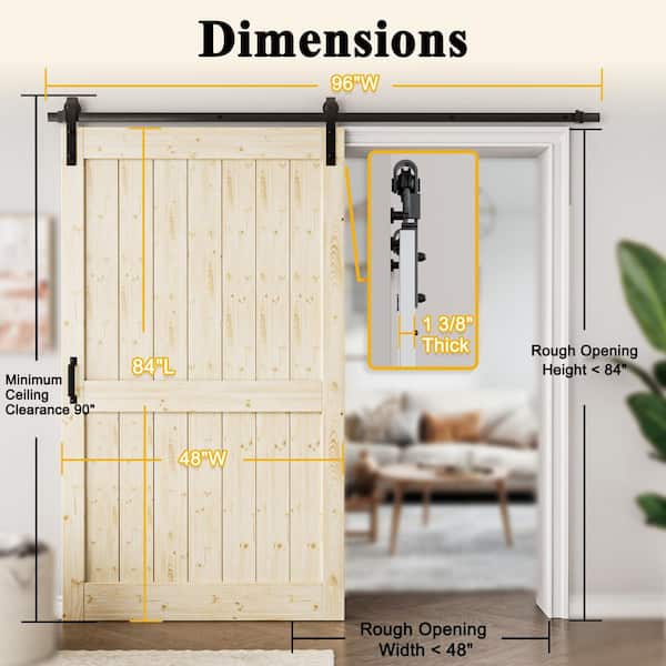 48 in. x 84 in. Paneled K Shape Solid Pine Wood Unfished Barn Door Slab with Installation Hardware Kit and Soft Close