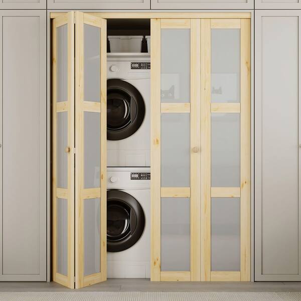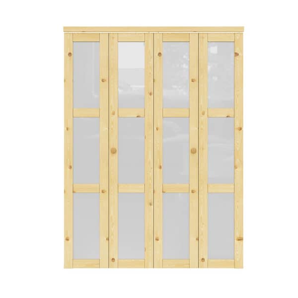 60 in. x 80 in. 3-Lite Pine Wood Tempered Frosted Glass and Solid Core Finished MDF Closet Bi-fold Door with Hardware