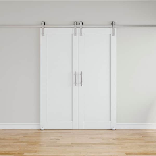 60 in. x 84 in. White 1-Panel Blank Solid Core Composite MDF Primed Sliding Barn Door with Hardware Kit Nickel Plated
