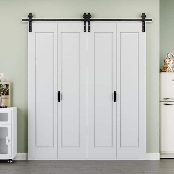 72 in. x 84 in. Easy Install 1-Panel White Primed MDF Composite Bi-Fold Sliding Barn Door with Hardware Kit and Handle