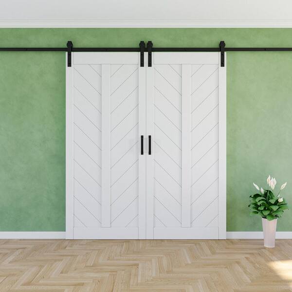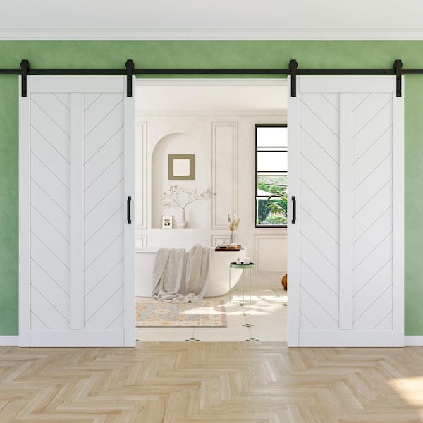 72 in. x 84 in. White Finished Solid Core MDF Herringbone Shape Sliding Barn Door Slab with Hardware Kit and Soft Close
