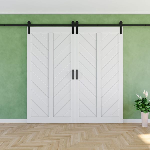84 in. x 84 in. White Finished Solid Core MDF Herringbone Shape Sliding Barn Door Slab with Hardware Kit and Soft Close