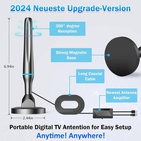 152 Miles 360° Reception Amplified UHF, VHF, 4K 1080p HD Digital Indoor TV Antenna with Strong Magnetic Base, Black