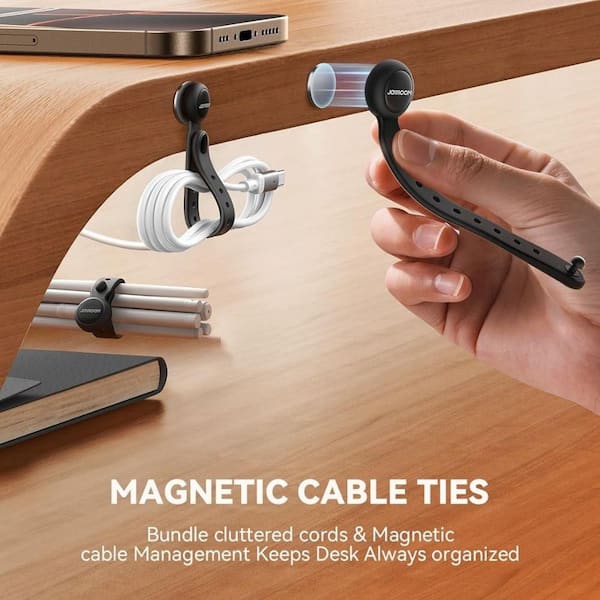 2025 Upgraded Magnetic Cable Ties with Magnets for Bundling & Cable Management (12-Pack, Black)