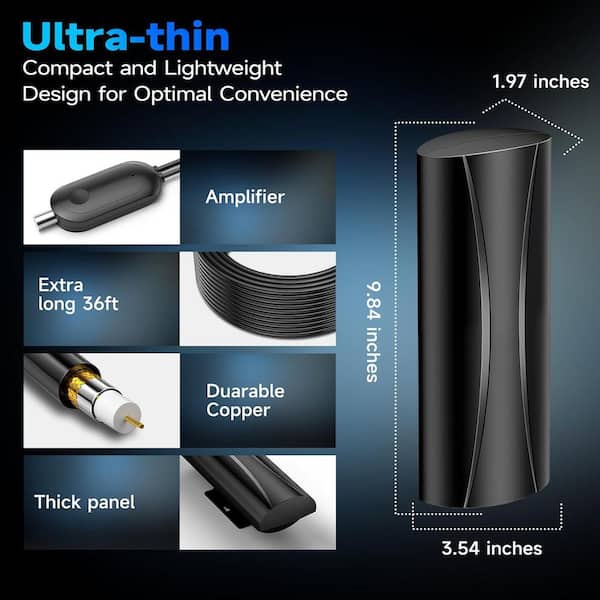 2200 Plus Miles Range Digital TV Antenna with Amplifier for Indoor/Outdoor 360° Reception 8K 4K HD Channels 38ft Cable