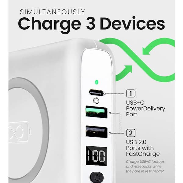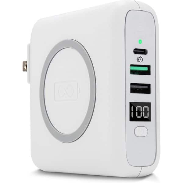 3-in-1 Wireless Portable Power Bank with USB-C and USB 2.0 Cable in White