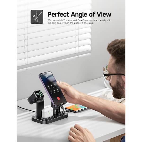 4 in1 Charging Station with 20-Watt & Self Adjustable Charger Stand Dock in Black