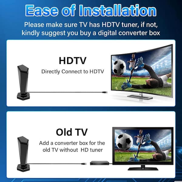 Digital Indoor TV Antenna 450 Plus Mile Range 360° Long Range Reception HDTV 8K 4K 1080p Support 10 ft. Coax Cable
