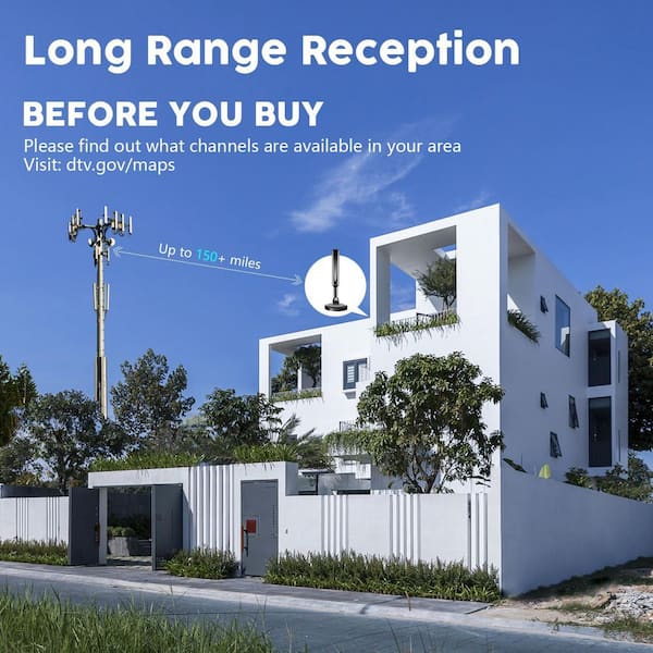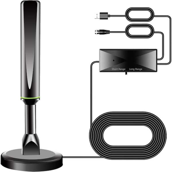 Digital TV Antenna with Strong Magnetic Base for Smart TVs Indoor 360° Long Range Reception Black