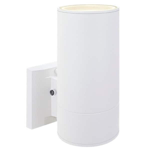 Enhanced 9 in. White Dusk to Dawn Indoor/Outdoor Hardwired Cylinder Sconce with No Bulb Included
