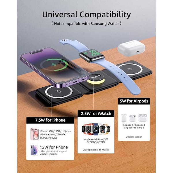 Foldable Wireless Charging Station Magnetic Travel Pad in Black