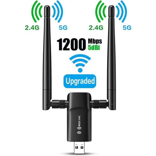 Hi Gain Dual Band 1300 Mbps USB Wi-Fi Dongle Network Adapter Black with 5dBi Antenna (1-Pack)