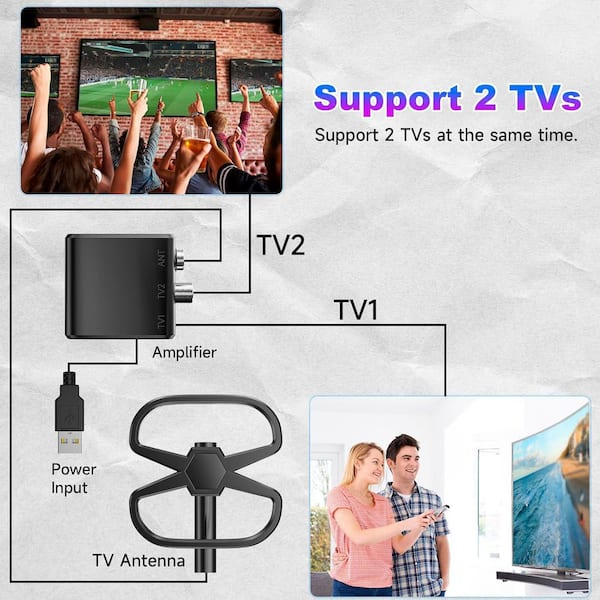 Indoor Outdoor TV Antenna 2900 Miles Long Range Supports 2 TVs 36 ft. Coax Cable HDMI Coaxial Connectors