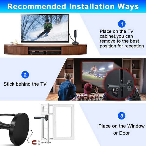 Indoor TV Antenna Digital HD with Magnetic Base 360° Reception 8.2FT Cable for 4K/1080P Channels Easy Setup