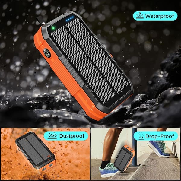 Solar Charger Power Bank 73200mAh Portable Charger with Hand Crank and Built-in Cables in Black w/ Flashlight, Compass
