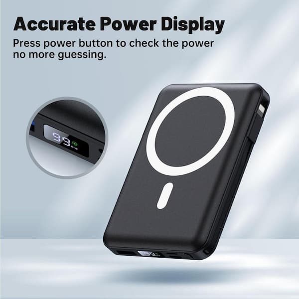 Ultraslim 10000 mAh Magnetic Wireless Portable Charger Power Bank 22.5-Watt Fast Charging with LED Display in Black
