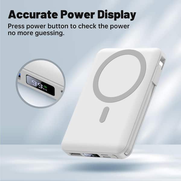 Ultraslim 10000 mAh Magnetic Wireless Portable Charger Power Bank 22.5-Watt Fast Charging with LED Display in White