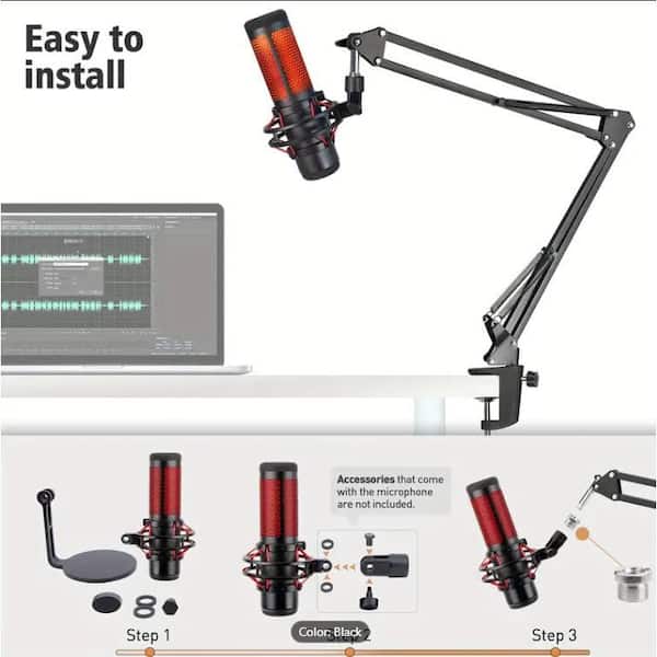 Upgraded Adjustable Microphone Suspension Boom Scissor Arm Stand With Shock Mount Mic Clip Holder