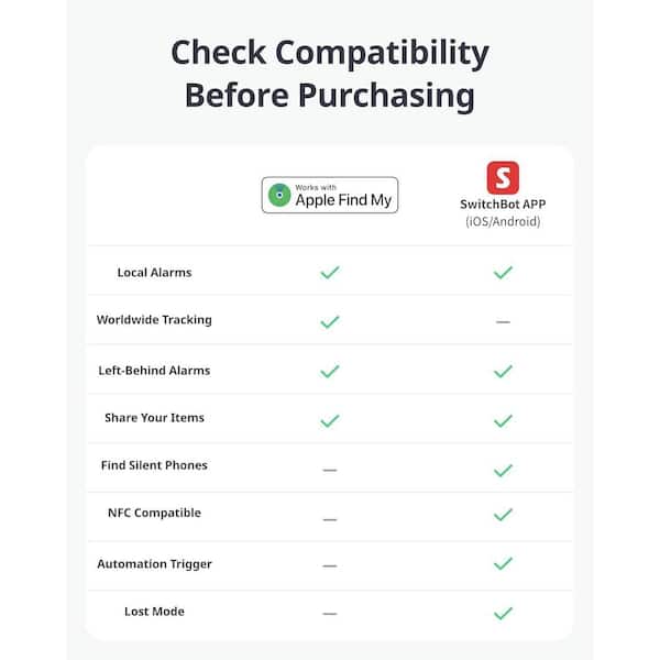• Compatible with Apple Find My or Switchbot apps