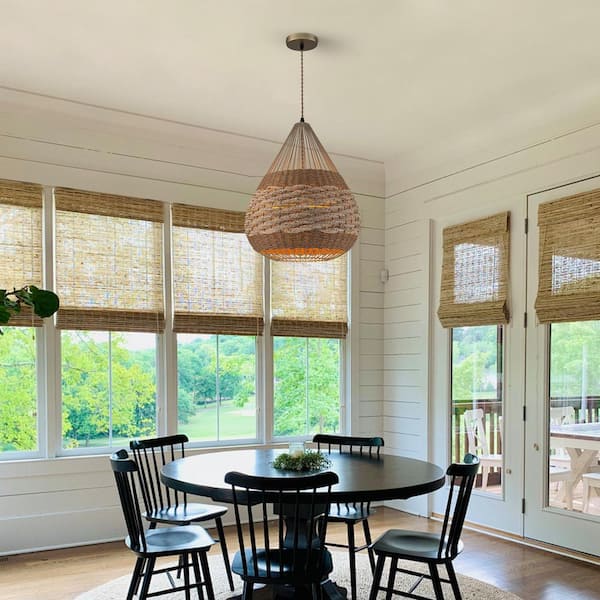 Palma 1-Light 2-Tone Natural Woven Teardrop Pendant Light in Brass Finish
