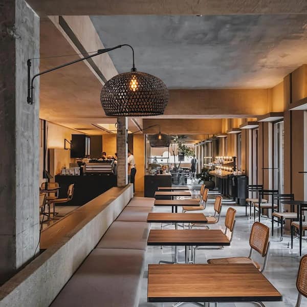 Vienna Plug-in Adjustable Swing Arm Wall Lamp in Matte Black Extendable Arm Rattan Shade