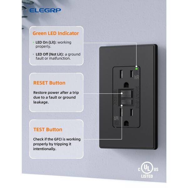 15 AMP 125V Duplex Tamper Resistant Weather Resistant Self-Test GFCI Outlet w/Screwles Wall Plate UL Listed BLK (6-Pack)