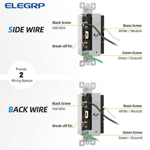 15 Amp Decorator Combination Single Pole Rocker Switch with Pilot Light, Wall Plate Included, White (2-Pack)