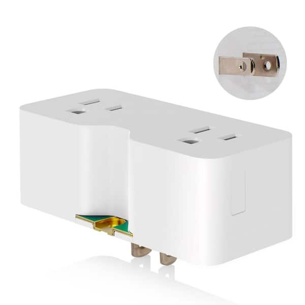 2 Prong to 3 Prong Grounding Adapter Plug, Outlet Extender with 2 AC Outlets (White, 1 Pack)