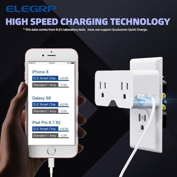 • Converts 1 outlet into 2 AC outlets and 2 USB ports