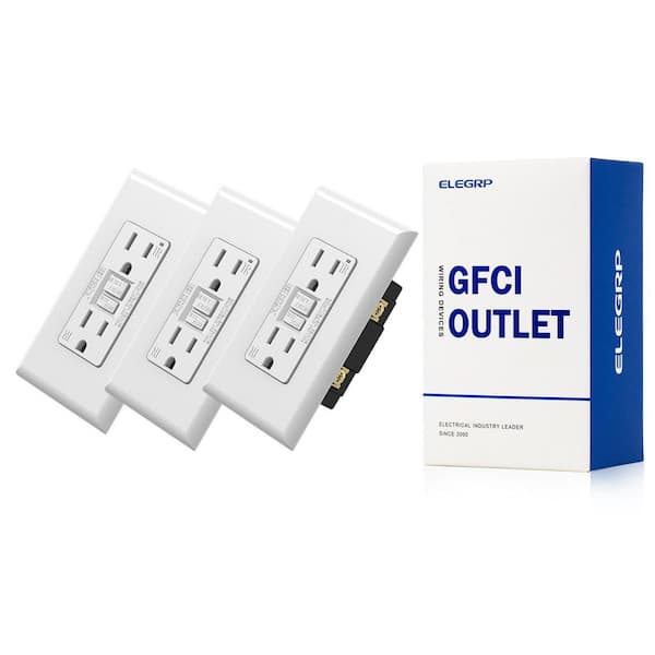 GFCI Outlet Self-Test, 15 Amp 125V Tamper Resistant Duplex wall outlet, Wall Plate included, UL Listed, Matte White 3PC