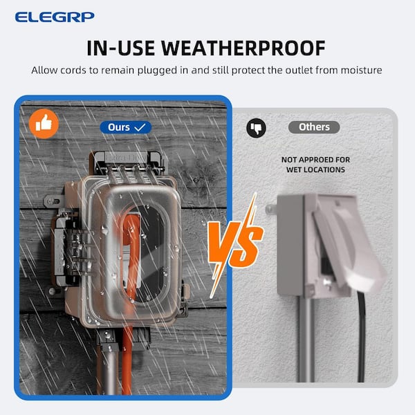 GFCI Outlet with Outdoor Cover and Box, Weather Resistant 15 Amp 125V Duplex Outlet, UL Listed, Matte White 1 PC