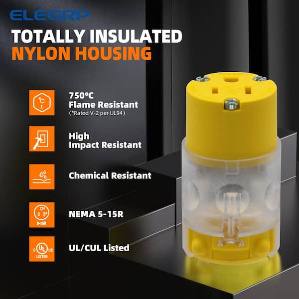 Lighted 15 Amp 125-Volt NEMA 5-15R 2 Pole 3 Wire Grounding Straight Blade Connector, Yellow (5-Pack)