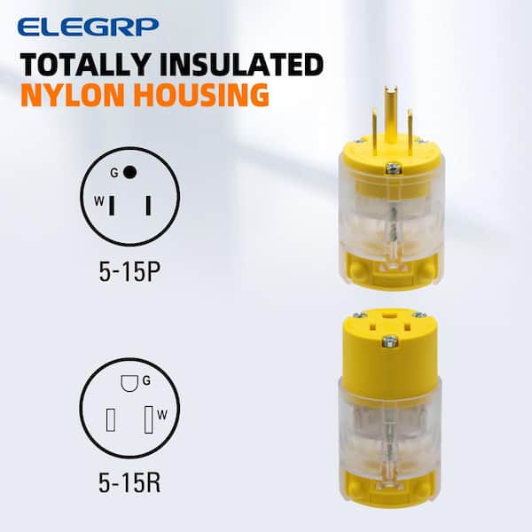 Lighted Straight Blade Plug and Connector Set, 15 Amp 125-Volt NEMA 5-15P/5-15R 2 Pole 3 Wire Grounding, Yellow (1-Set)