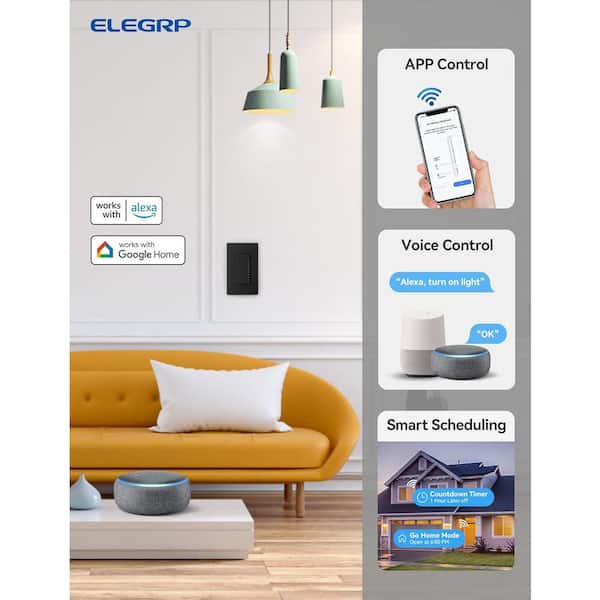 Smart Dimmer Light Switch Single Pole, 2.4GHz Wi-Fi Dimmer Switch Compatible w/Alexa and Google Assistant, Black 1-Piece