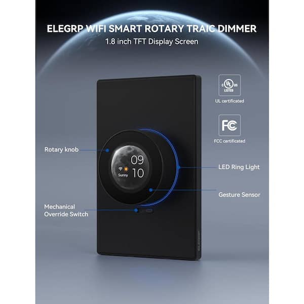 WiFi Smart Black Rotary Traic Dimmer with 1.8 in.TFT Display Screen, 3 Way, 2 Pack