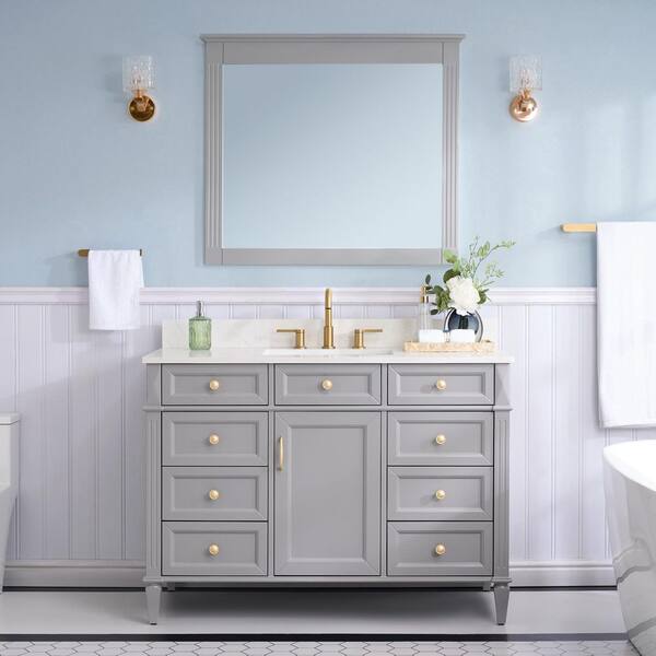 ELISA 48 in. W x 22 in. D x 35 in. H Single Sink Bath Vanity in Gray with Quartz Top