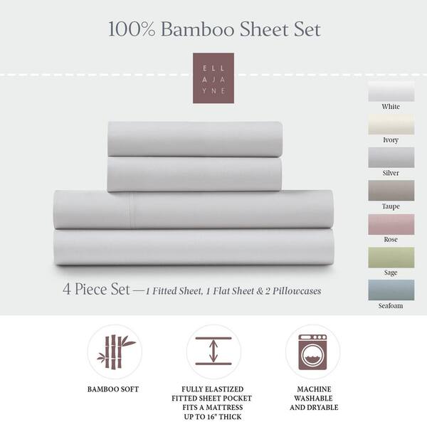 Bamboo Deep-Pocket 4-Piece King Sized, Silver Sheet Set