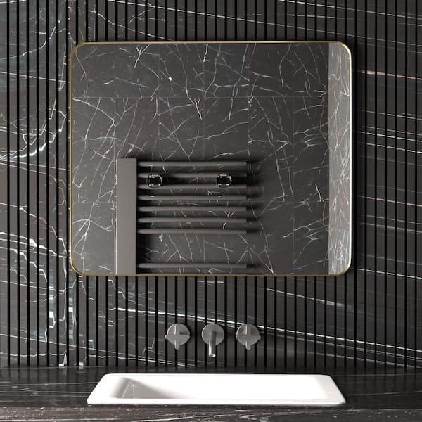 20 in. W x 28 in. H Rectangular Framed Wall Bathroom Vanity Mirror in Gold