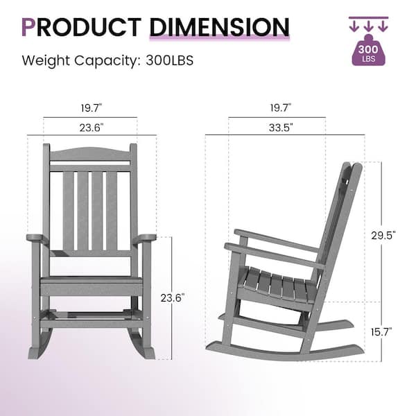 2-Person Gray HDPE Plastic Wood Outdoor Rocking Chair Set-Effortless Comfort for Your Patio