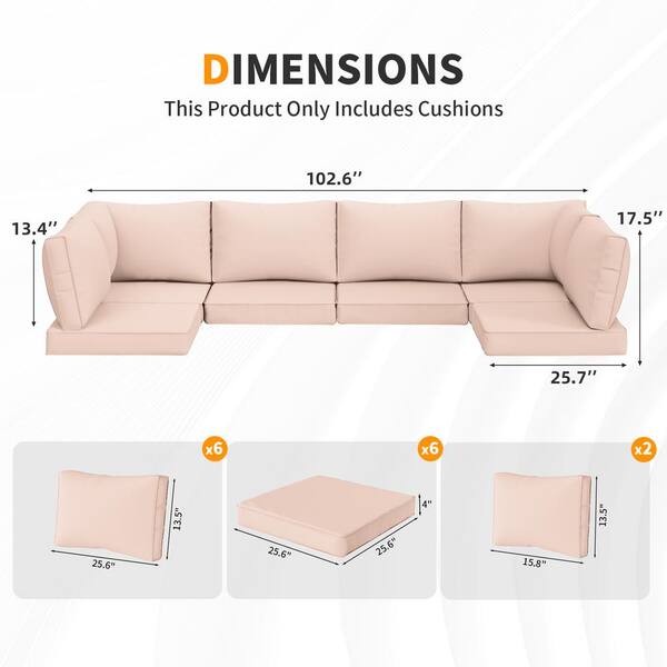 25.6 in. x 25.6 in. x 4 in. (14-Piece) Deep Seating Outdoor Sectional Cushion Corner Set Beige