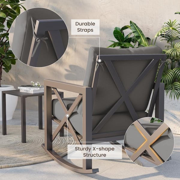 3-Piece Metal Patio Conversation Set with Gray Cushions