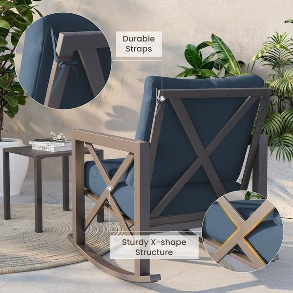 3-Piece Metal Patio Conversation Set with Navy Cushions
