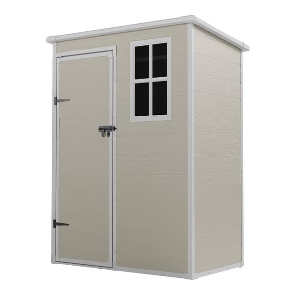 5 ft. W x 3 ft. D Pale Taupe Outdoor Resin Plastic Storage Shed with Sloping Roof, Double Lockable Door(15 sq. ft. )