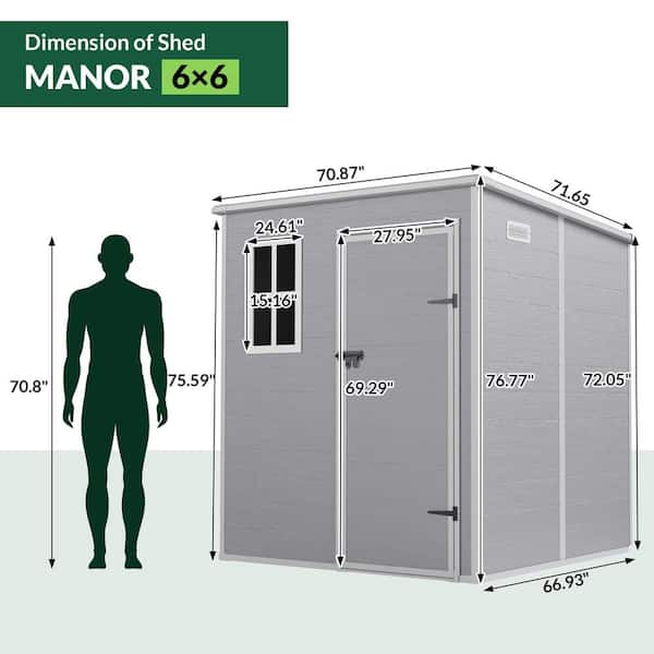 6 ft. W x 6 ft. D Gray Durable Outdoor Resin Plastic Storage Shed with Sloping Roof, Double Lockable Door(36 sq. ft. )
