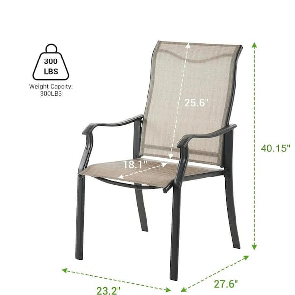 Stationary Metal All-Weather Textilene Beige Outdoor Patio Dining Chairs with Curved Arms for Garden Lawn (Set of 2)
