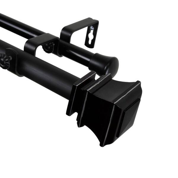 1" Dia Adjustable 28-48" Double Curtain Rod in Black with Rochella Finials